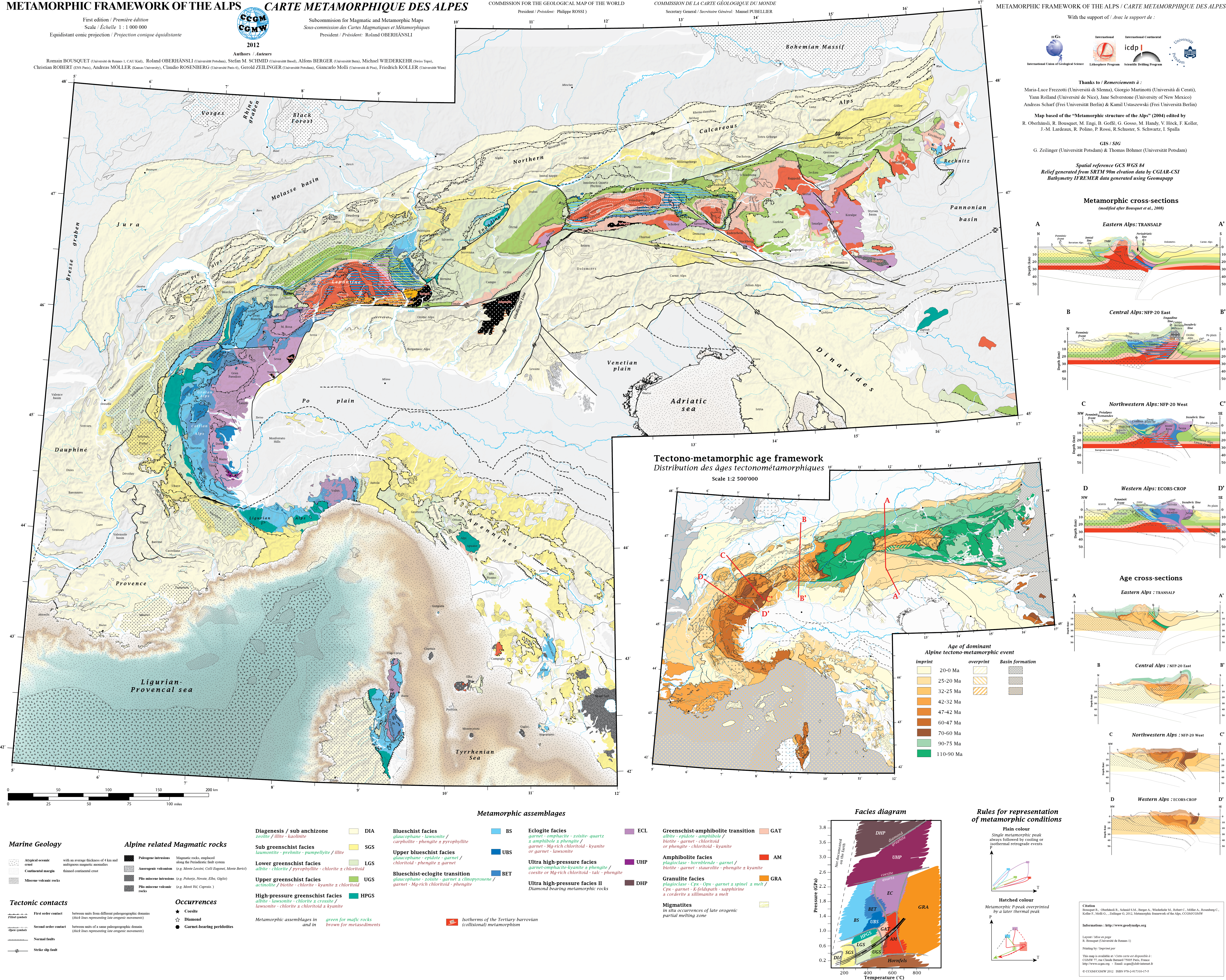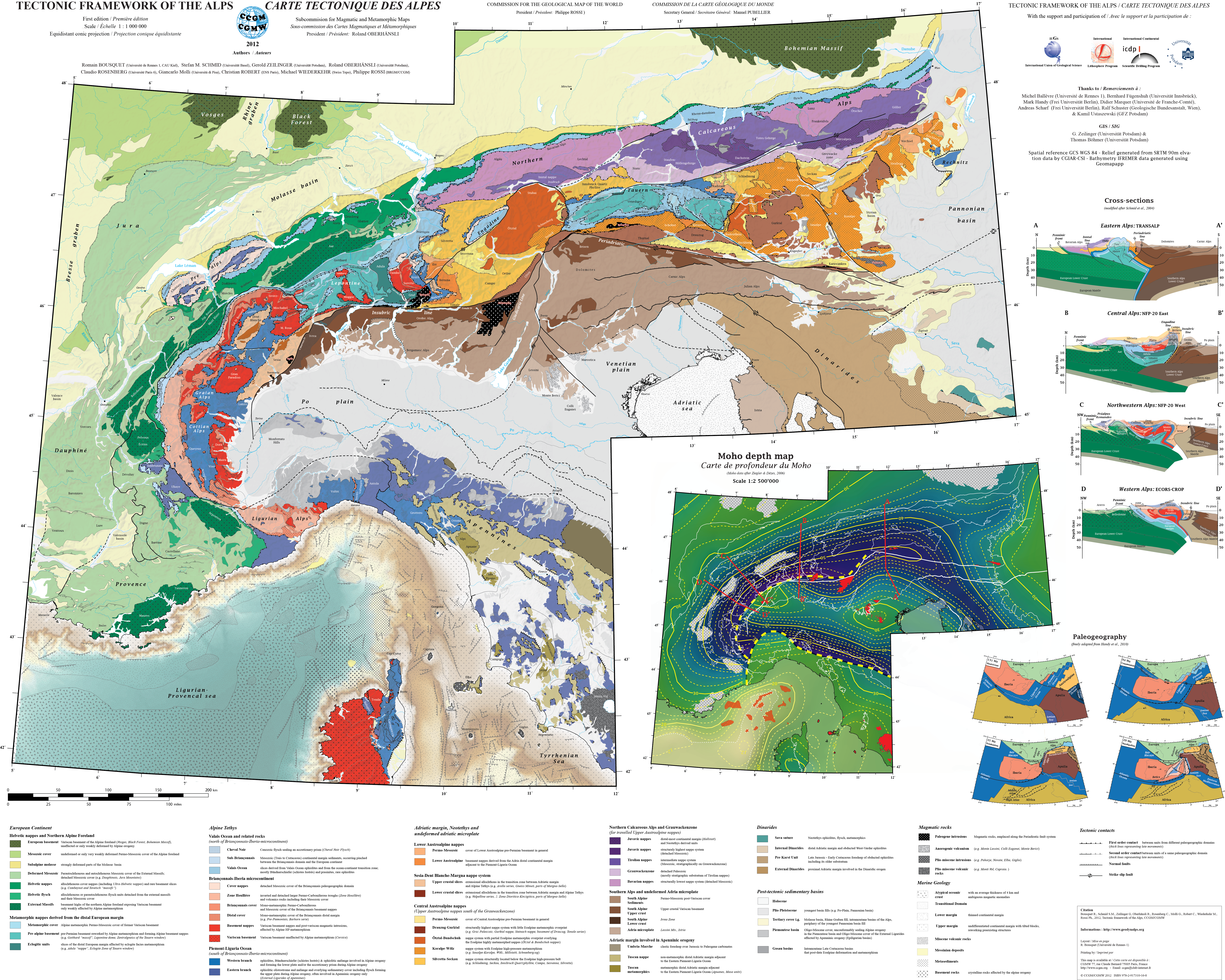 - Schmid, S.M., Fügenschuh, B., Kissling, E. and Schuster, R. (2004). Tectonic map and overall architecture of the Alpine orogen. Eclogae geologicae Helvetiae 97: 93-117.